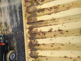 I mention all of this, because rust is something I’ve been battling myself this past week. The Conex boxes that currently hold almost all of our worldly possessions have big dents in the roof, (it’s why they aren‘t still being used for sea voyages) and those collect water, and thus rust. Allowed to continue, this would end poorly.